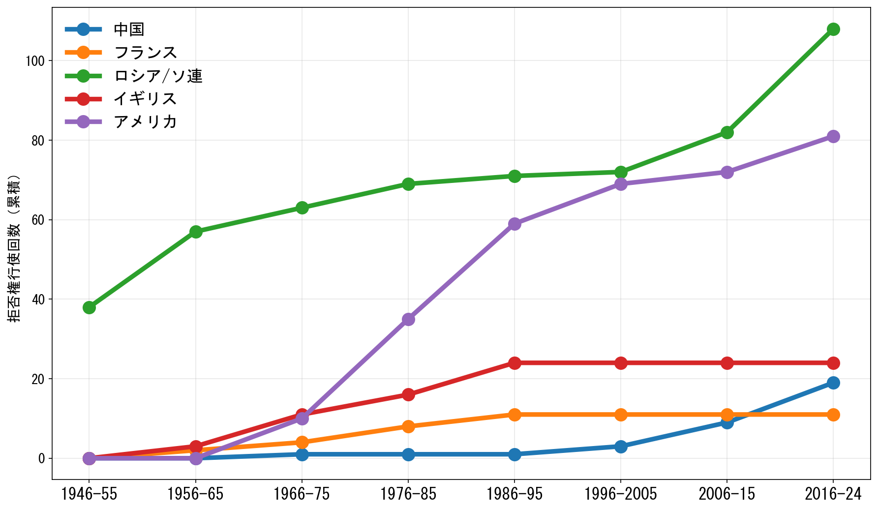冷戦期には拒否権が数多く行使されたり、その行使が予想されたりした