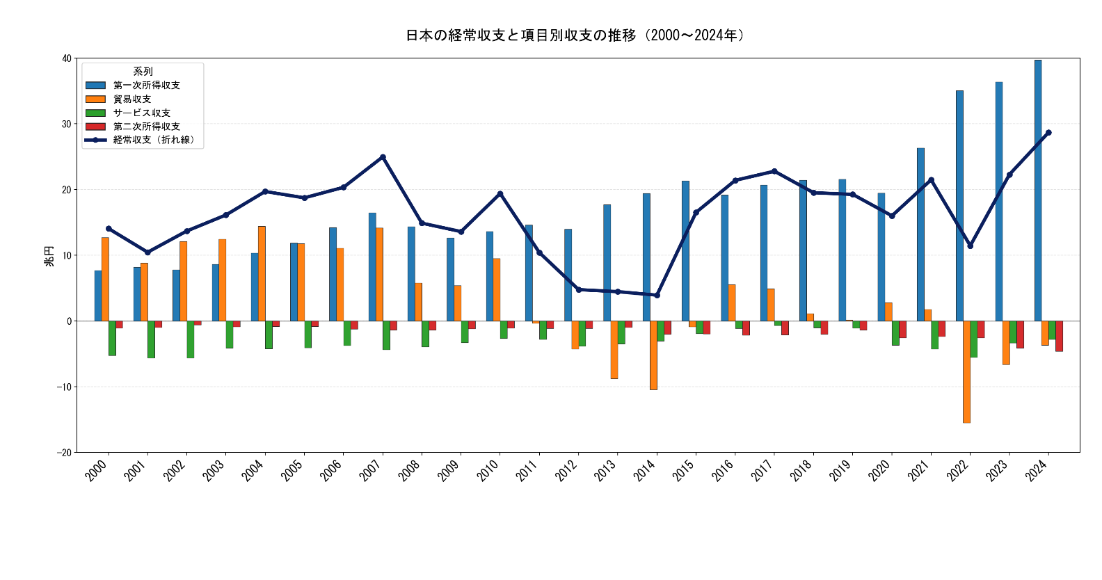 日本の国際収支の主要項目がとなる